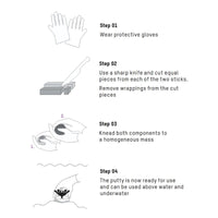 Der Kleber ist nun einsatzbereit und kann über sowie unter Wasser verwendet werden.