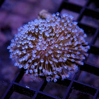 Wir haben die Korallen auf Ablegersteinen befestigt. Diese Steine machen sich gut in unserer Zuchtanlagen und können manchmal so auch gut im Riffaufbau eines Meerwasseraquariums verankert werden. Mitunter können gerade die "Stiele" der Ablegersteine aber auch stören. Diese kannst Du jedoch ganz leicht mit einer Zange abknipsen. Zur Positionierung nutze am besten einen Korallenkleber, um das Tier auf dem Aufbau fest anzubringen.