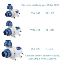 Laufzeiten (abhängig vom Pumpenmodell):
