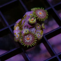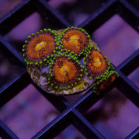 Zoanthus-Kolonien bestehen aus einer Vielzahl kleiner Polypen. Sie sind flachwachsend und können Gestein und Boden allmählich wie Krusten überziehen. Die Palette an Farben und Mustern innerhalb der Zoanthus ist geradezu unendlich - etwas, dass das Sammlerherz vieler Meerwasseraquarianer höher schlagen lässt. Bei der Namensgebung ist es in der Aquaristik üblich auf kunstvolle Namen, wie "Watermelon" zurückzugreifen. Über eine wissenschaftlich korrekte Artbestimmung herrscht nach wie vor Unklarheit.