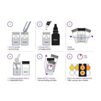 In ein Messglas 5 Tropfen Reagenz NO3-1 geben, Glas verschließen und schütteln.